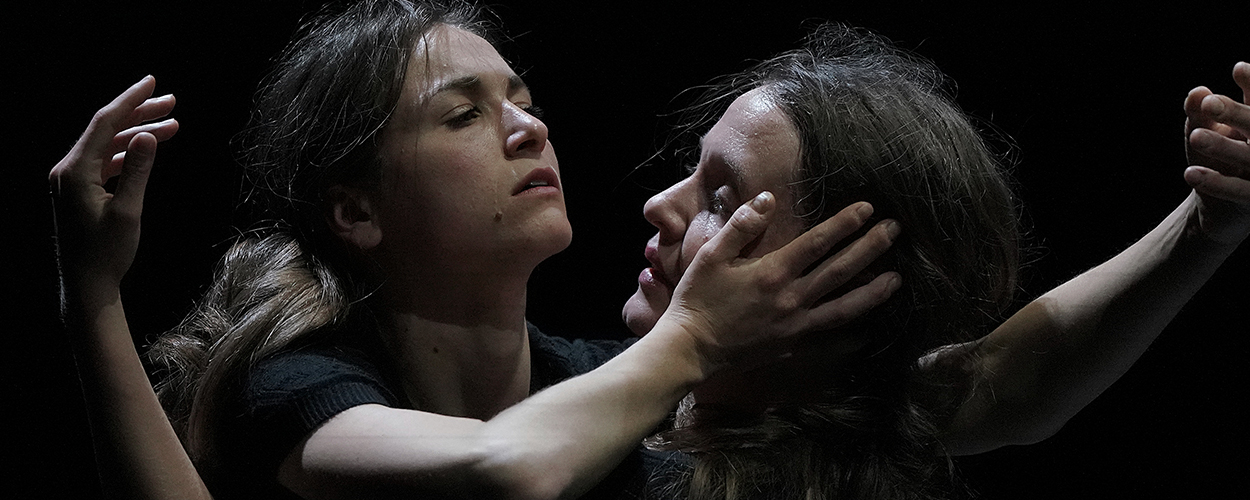 In the space of suspension, perhaps feeling emerges: the relationship between two bodies in contact, mirroring each other, becoming image, form, one of the other—transversally, obliquely—an active passage between one state and another, to face a distant pain, and to set aside, if only for a moment, the habit of looking away.
